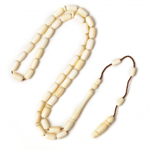 سبحه من البكلايت باللون الكحلي بخرز كروي قياس 10 ملم منظومه من 51 خرزه بتفاسير وطربزونه 7.5 غرام من الفضه عيار 1000