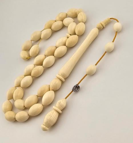 سبحه من عاج الفيل, 35 خرزه زيتوني 13.5 في 11 ملم وشاهد منقوش.