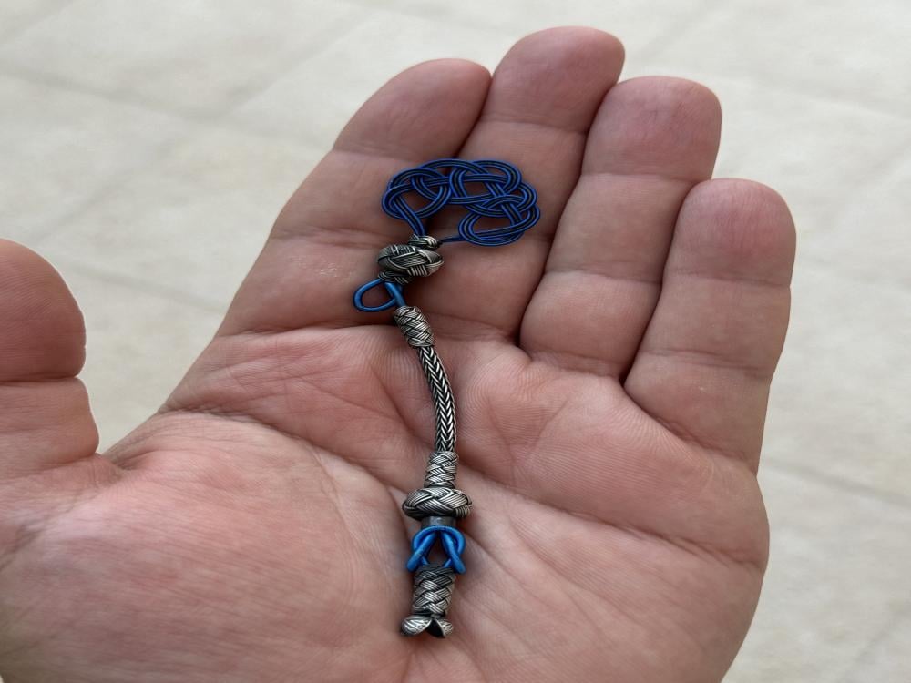 طربزونه فضه بلون فضي غامق ازرق بتصميم حلقي و طرف احادي ومشبك كبس. عيار 1000 الوزن 6.05 غرام