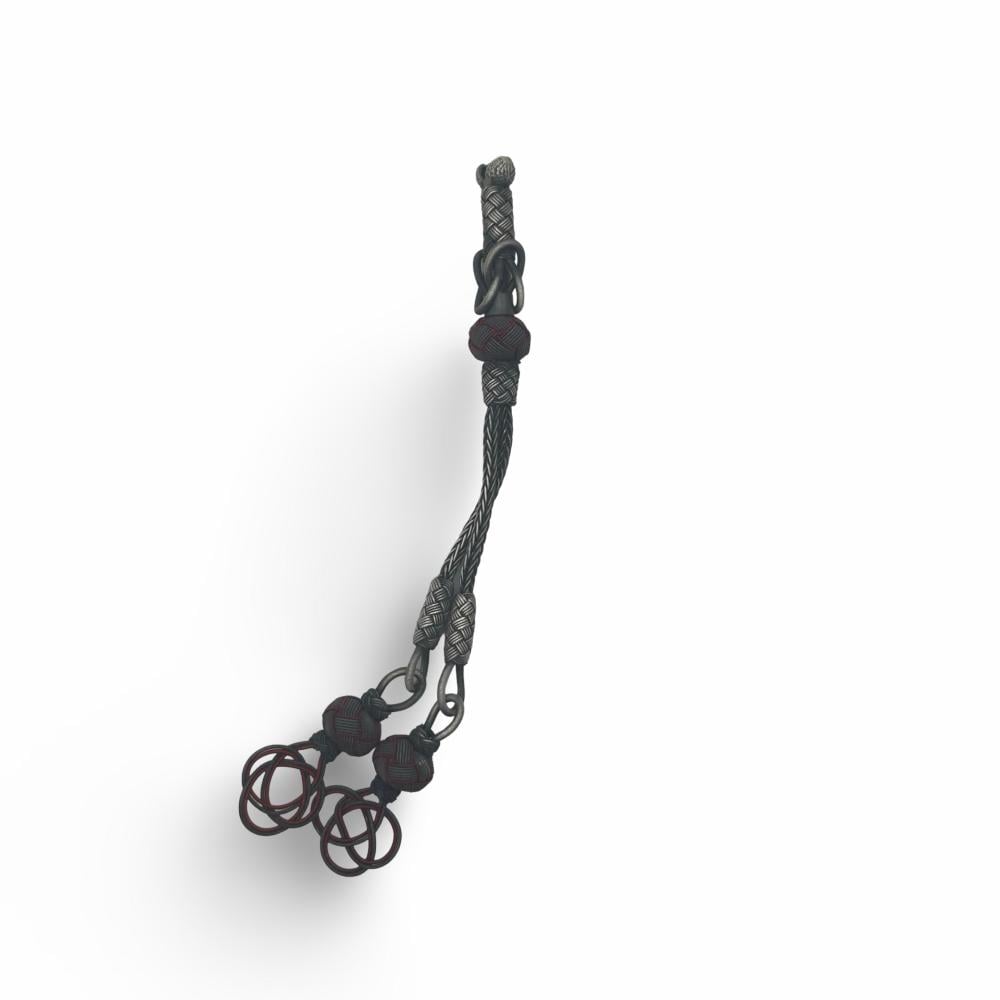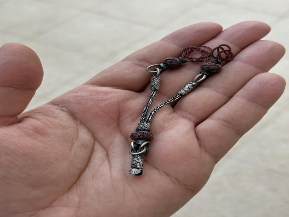 طربزونه فضه بلون فضي غامق واحمر بتصميم حلقي ثلاثي و اطراف ثنائيه ومشبك كبس. عيار 1000 الوزن 7.6 غرام