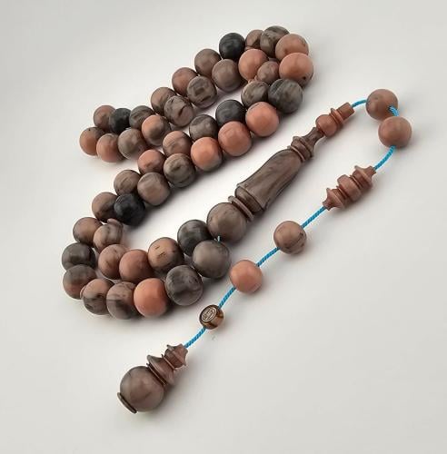 سبحه فاتوران ناعمه بلون تفاحي معرق و خرز صنوبري قياس 5.5 في 9.5 ملم 55 خرزه