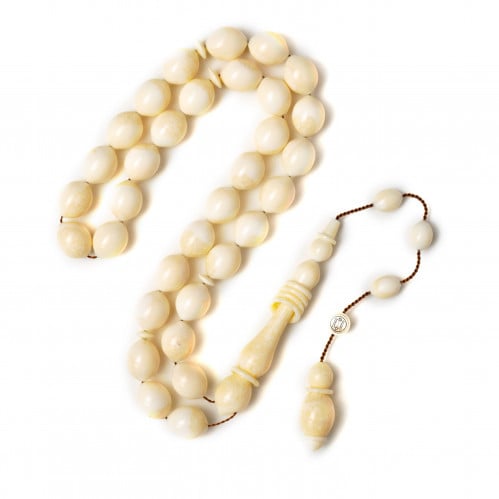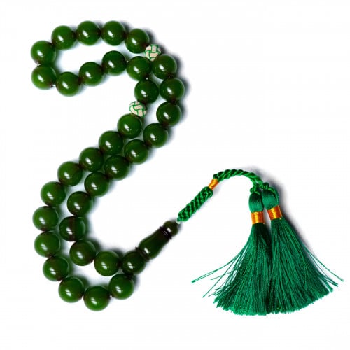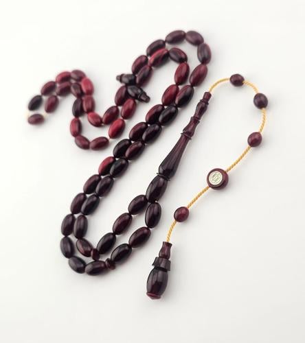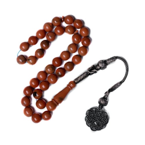 سبحه من الزنجبل المضغوط برائحه فواحه بخرز زيتوني قياس 10 ملم في 7 ملم. منظومه من 33 خرزه بطربزونه من الفضه عيار 1000. الوزن 15 غرام.