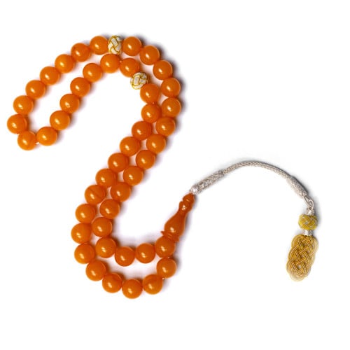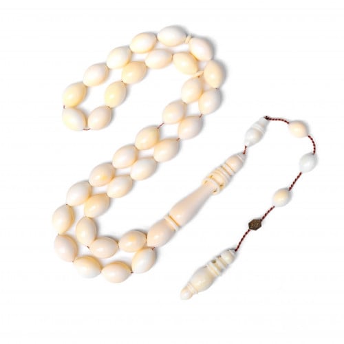 سبحه من القرقفه المضغوطه برائحه فواحه بخرز برميلي قياس 9 ملم في 8 ملم. منظومه من 33 خرزه بطربزونه من الفضه عيار 1000. الوزن 17 غرام.
